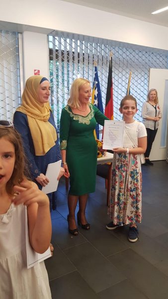 U konzulatu BiH u Minhenu izvršena je dodjela diploma polaznicima škole bosanskog jezika koja veoma uspješno radi u prostorijama džemata Fedžr. Više od 34 djece je uspješno završilo ovu školsku godinu.